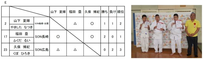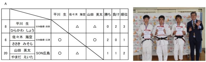 最後になりましたが、今井産業様、株式会社しちだ・教育研究所様、江津ライオンズクラブ様、桜江ライオンズクラブ様には、多額の寄付をいただき、当日も声援をいただきました。また、島根県柔道連盟・江津市柔道連盟の皆様には、審判員の派遣、試合運営の分担、会場の設営・撤収と献身的に協力いただきました。ご紹介に合わせ、お礼申し上げます。ありがとうございました。